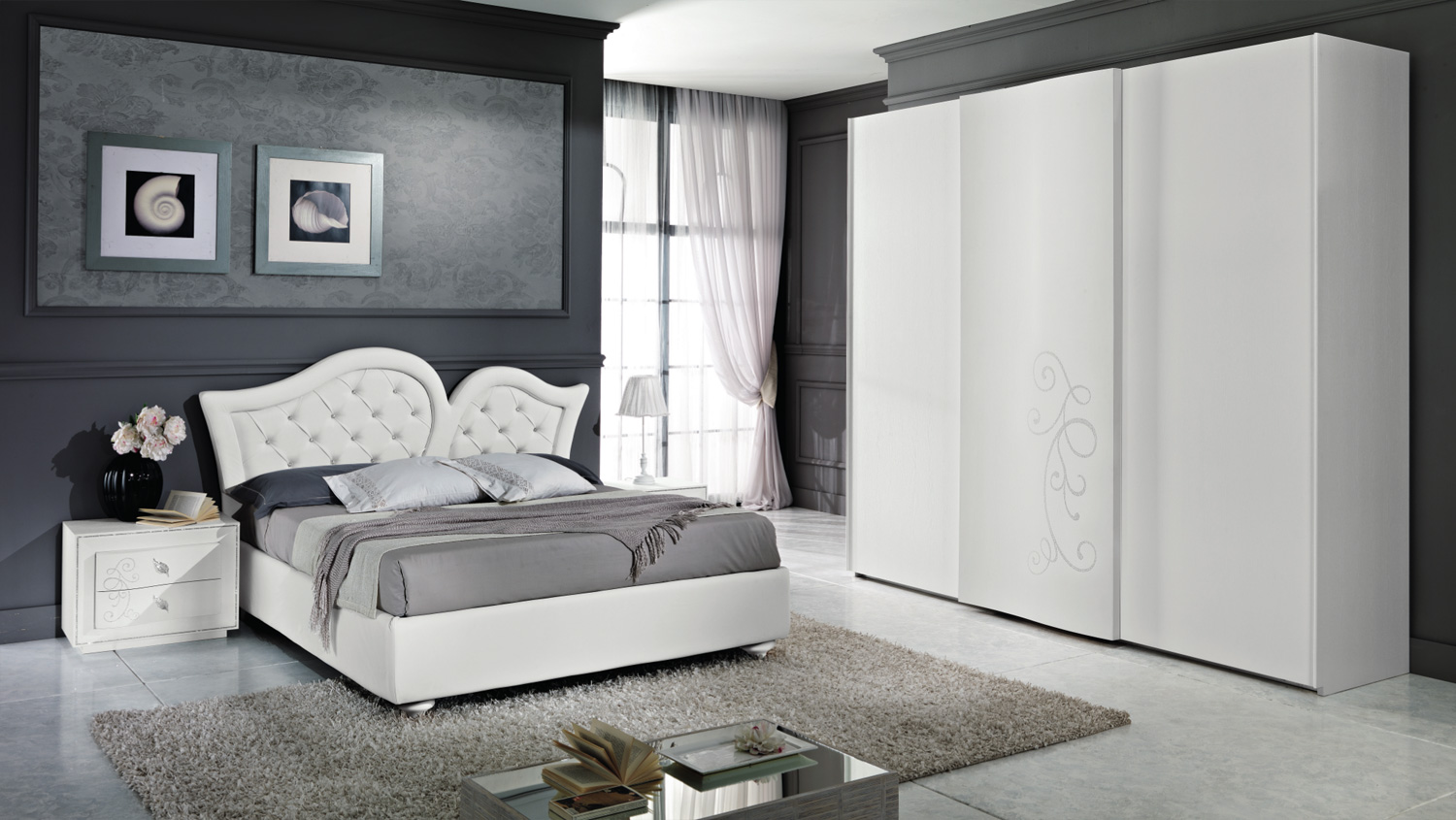 Il design semplice e pulito non tralascia la ricercatezza dei particolari, la preziosità dei decori in glitter e l’originalità del letto King.