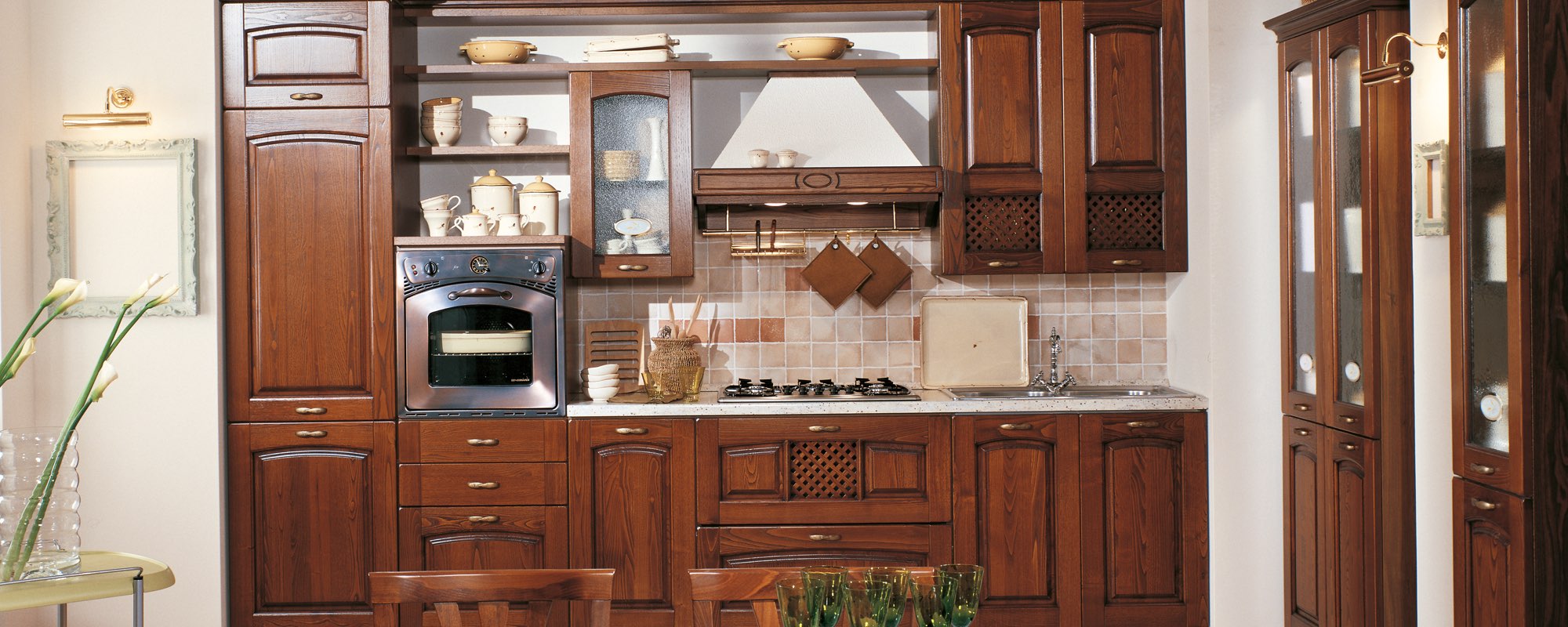 Il profumo del legno, il rassicurante sapore delle cose fatte bene, con tutta la cura necessaria fino ai minimi particolari. Questa è la realtà di Focolare, una cucina in massello di castagno dal forte spessore, ricca di promesse estetiche e tecniche, che esaltano l’elevata qualità dei materiali per vivere la cucina.