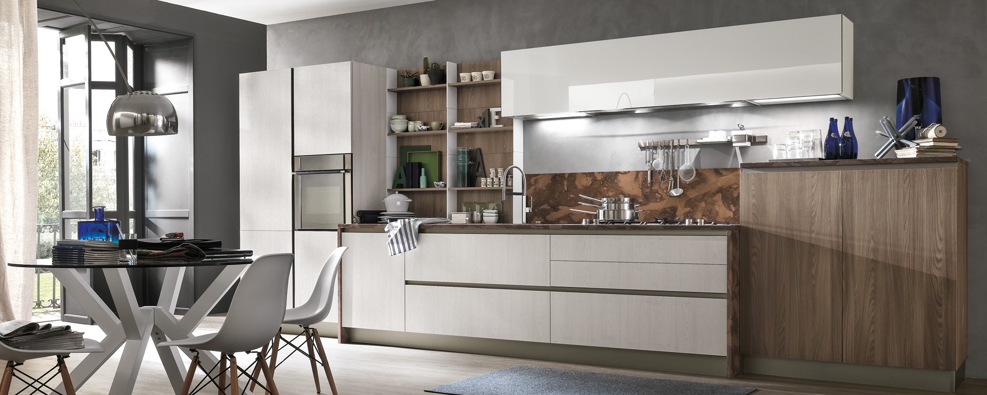 Infinity è un sistema versatile che propone uno spazio giovane e creativo in cui tutto è in movimento. Un carattere inconfondibile, abbinamenti e finiture che spaziano dalle venature tipiche del legno ai laccati, ingredienti di ieri e di oggi che si fondono in un’inconfondibile e lineare armonia d’arredo. Nuove finiture per l’anta incontrano nuovi sistemi d’apertura, tra cui la maniglia a “L” e la maniglia Diagonal, lavorata con un esclusivo taglio inclinato di 40°, che agevola la presa e l’apertura. Infinity di Stosa Cucine offre tanti modi di vivere l’ambiente cucina, dalle proposte Nordic Style a quelle dal gusto metropolitano. Gli spazi possono essere personalizzati in modo semplice, ma con grande stile, grazie ad elementi come il piano pentagonale, o la cappa Ipe con inserto in finitura delle ante. Perché Stosa vede nella cucina il cuore pulsante della casa, un ambiente accogliente, caldo e funzionale dove vivere la quotidianità e la gioia di stare insieme.